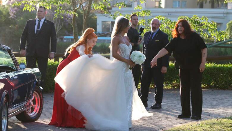 Como se mencionó anteriormente, el festejo se dio luego de casarse por iglesia en una ceremonia familiar y también dieron el “sí” en el Registro Civil el último miércoles para legalizar su unión. En ese sentido y siendo oficialmente marido y mujer, la pareja salió a la entrada del resort donde llevaron a cabo la celebración para hablar con los medios presentes una vez finalizada la ceremonia, el momento más emotivo de la jornada con un paisaje soñado de fondo y un atardecer de ensueño cayendo sobre la laguna del hotel.