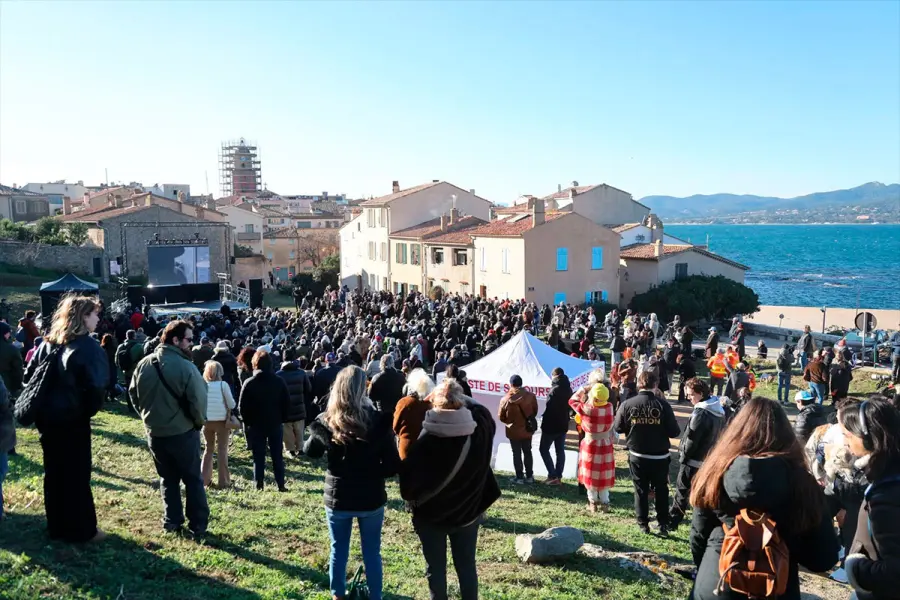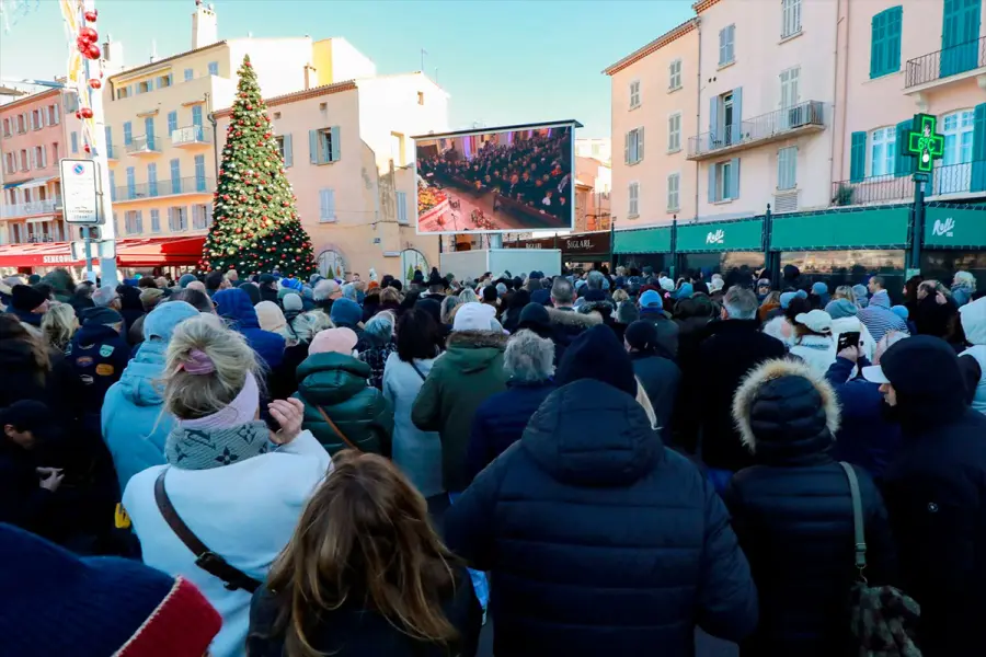 Miles de admiradores de Brigitte Bardot se congregaron este miércoles en las calles próximas a la iglesia de la localidad de Saint Tropez. Siguieron la ceremonia ante una pantalla gigante que la retransmitía bajo un intenso frío. Uno de ellos mostraba una pancarta donde se leía "Los animales le dan las gracias a Brigitte Bardot".