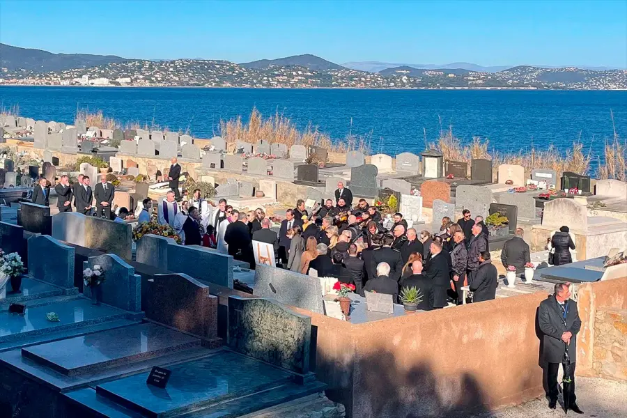 Tras el funeral, la comitiva se encaminó al cementerio marino, situado bajo la ciudadela y frente al Mediterráneo, donde se encuentra también la tumba de su primer marido, Roger Vadim, el realizador de "Et Dieu.. créa la femme" (Y Dios creó a la mujer), que en 1956 con solo 22 años la catapultó al estrellato.