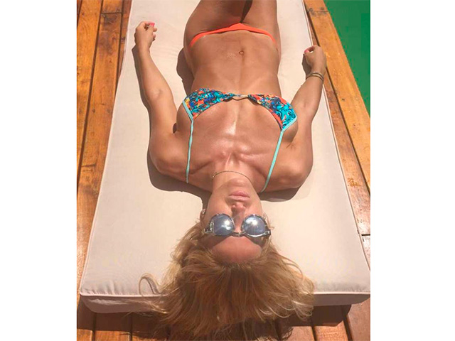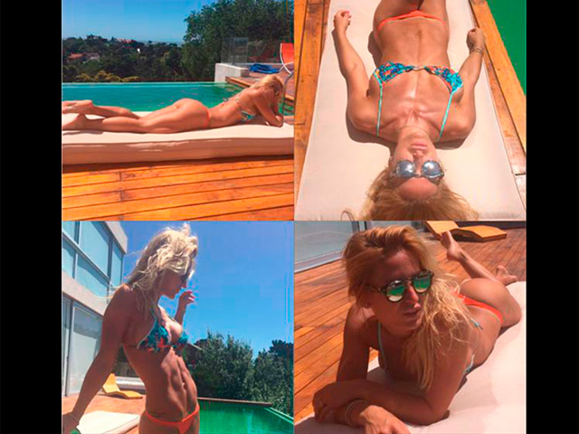 A través de su cuenta de Twitter, la modelo mostró su cuerpo trabajadísimo al sol y, sobre todo, su cola, una de las más envidiadas del ambiente artístico, mientras promociona la marca de trajes de baño que la tiene contratada.