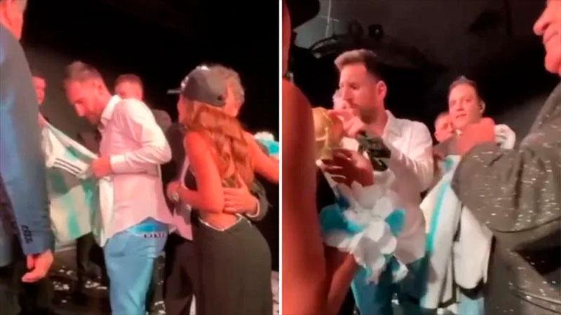 En ese momento, se o vio a Messi agitar y cantar el tema que guio al equipo albiceleste a celebrar su tercera estrella mundial.