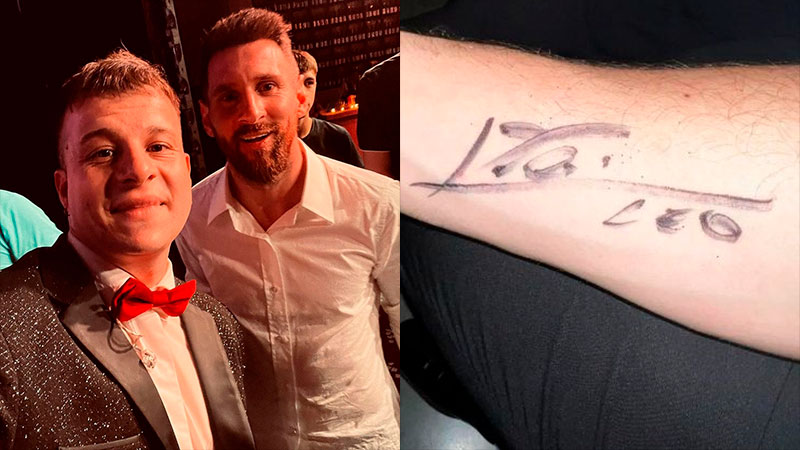 Lionel Messi le firmó el brazo a un músico de Los Palmeras