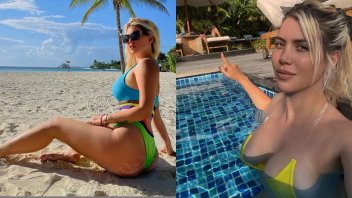 Wanda Nara aprovechó la llegada del verano en Europa. Desde Milán, donde reside con su familia, posó con una microbikini amarilla desde la pileta. Y luego se mostró con parte de su familia disfrutando del agua.