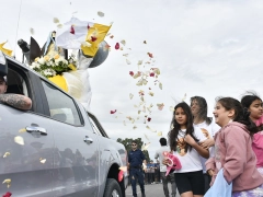 Bajo el lema “Con María, peregrinos de esperanza”, se realiza la 43ª edición de la Peregrinación de los Pueblos. Las imágenes del comienzo de la caminata por la ruta.