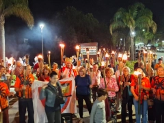 El desfile de antorchas fue encabezado por la reina y el rey de la primavera, en el marco de las celebraciones por el Día Internacional del Adulto Mayor, impulsadas por el área municipal de Adultos Mayores