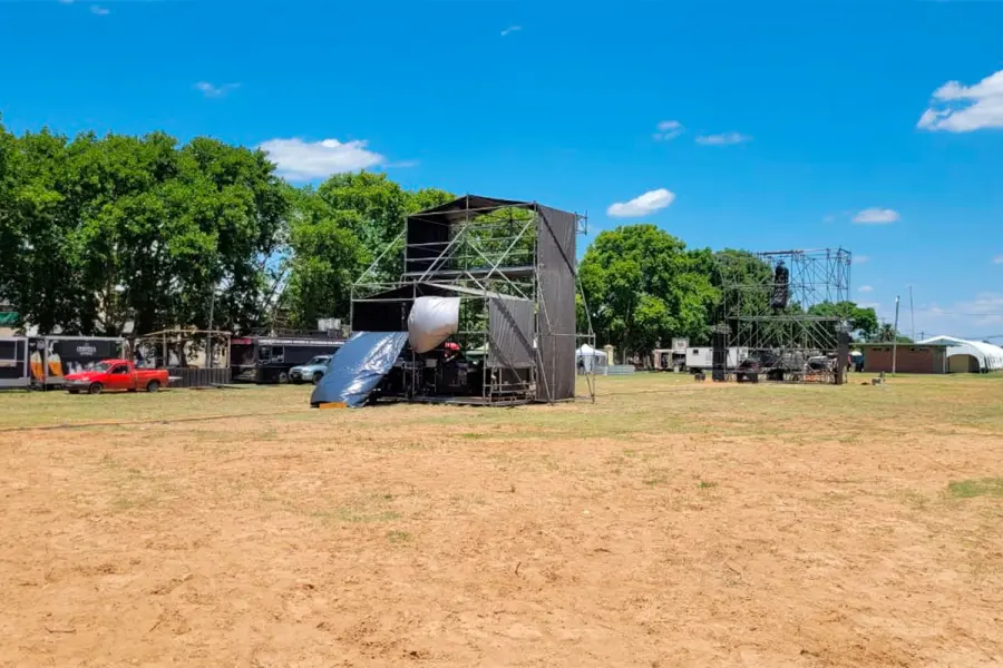 A un día del inicio del festival, trabajan en el escenario principal que recibirá a artistas nacionales y más de 30 bandas locales del 14 al 18 de enero en el Predio Multieventos de Concepción del Uruguay.