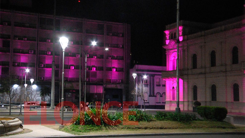 Los emblemáticos edificios del Centro Cívico de Paraná, que incluyen la Casa de Gobierno, el Palacio de Educación y el Palacio de Justicia, se tiñeron de rosa en conmemoración del Día Internacional de Lucha contra el Cáncer de Mamas. La iniciativa iluminó el cielo de la ciudad este jueves por la noche.