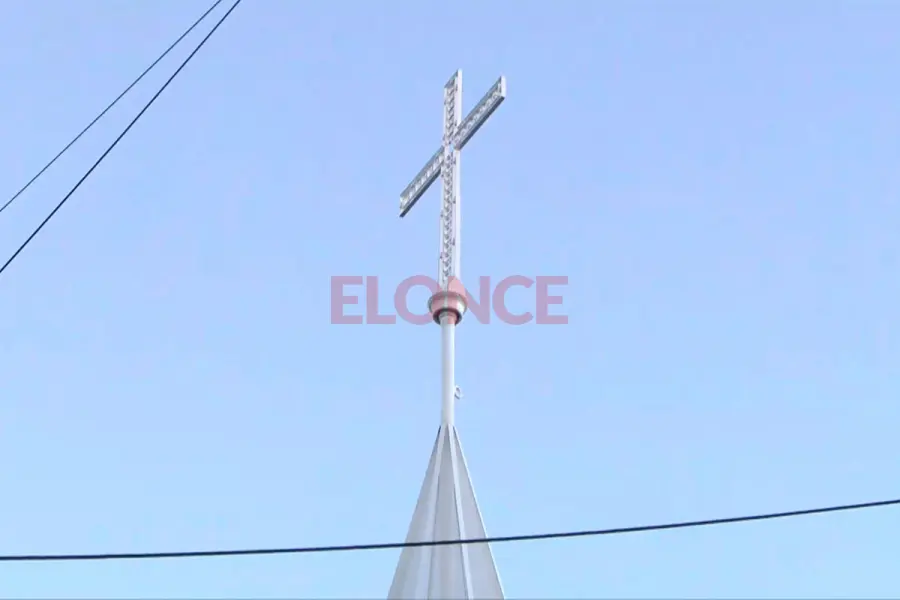 La estructura fue realizada en metal desplegado por Sergio, herrero y principal responsable técnico de la obra. “El señor que la hizo fue Sergio, que ha hecho absolutamente todo acá en la capilla: portones, puertas, ventanas, electricidad y parte del piso”, detalló el padre Tapita, quien resaltó el compromiso del trabajador durante más de una década.