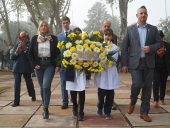 La ceremonia oficial tuvo lugar entre las plazas Artigas y Washington, con la presencia del intendente José Luis Walser, la viceintendenta María Dalleves, concejales, funcionarios, autoridades educativas y fuerzas de seguridad. Luego del izamiento de la bandera, el Himno Nacional y la Marcha de Entre Ríos, se compartieron palabras religiosas y una ofrenda floral al pie del busto de Manuel Belgrano.