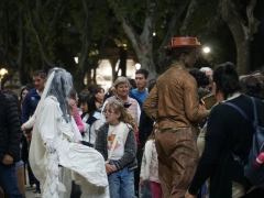 La intervención reunió a decenas de estudiantes que, guiados por docentes de distintos profesorados y cátedras, presentaron casi 70 estatuas vivientes de autoría propia. Entre ellas hubo personajes históricos, referencias literarias, escenas de oficios y propuestas contemporáneas que invitaron a la reflexión y al juego con el público.