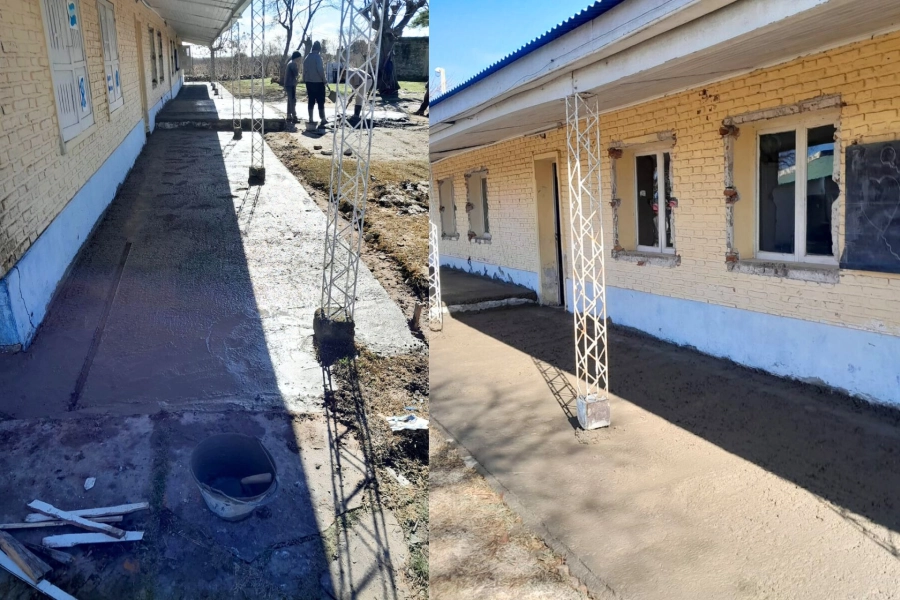 La obra incluye mejoras en la instalación eléctrica, cielorrasos, revoques, pisos, cubierta del techo y carpintería. Uno de los principales problemas que presenta el edificio es el deterioro de las persianas de madera en aulas y dirección, lo que compromete la seguridad de las aberturas al dejar expuestos los vidrios. Esta situación se agrava por el entorno rural donde se ubica la escuela, que además brinda servicio de comedor y dicta clases de nivel inicial y primario. Los trabajos están a cargo de la firma José Ignacio Tomasini.