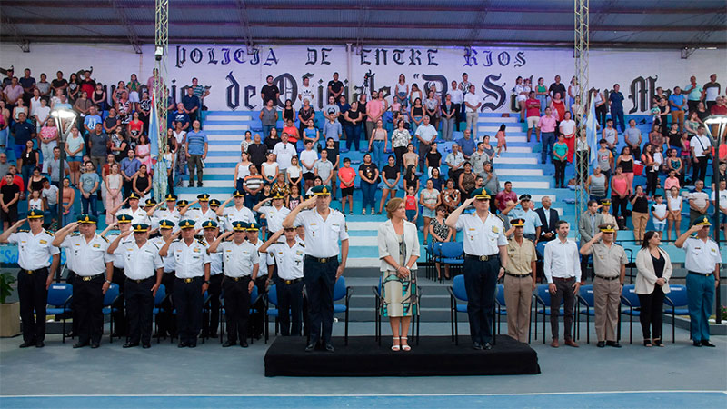 La jornada contó con la presencia de oficiales, suboficiales y agentes pertenecientes a las escuelas Gral. Francisco Ramírez, Comisario Gral. Pedro Campbell, la División Coordinación Universitaria, la Banda de Música de la Policía de Entre Ríos y la Escuela Superior de Oficiales Dr. Salvador Maciá de Paraná, donde se desarrolló el acto.