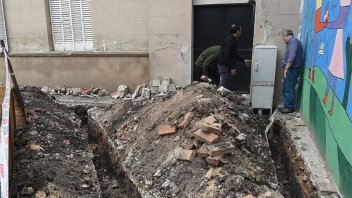 El zanjeo realizado para una conexión en la vereda, se realizó socavando los cimientos de la pared perpendicular donde se realizó el Mural de Milo Locket con motivo de una jornada de concientización sobre autismo.