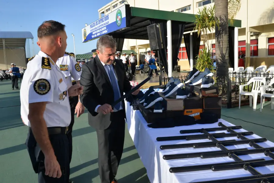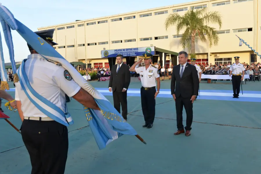 En una ceremonia realizada este miércoles en la ciudad de Villaguay, la División Escuela de Agentes "Pedro Fernando Ramón Campbell", llevó adelante el acto de egreso de la Promoción CXX de Agentes Masculinos, marcando el cierre de un ciclo de formación profesional que este año incorporó 187 nuevos efectivos a la fuerza. El ministro de Seguridad y Justicia, Néstor Roncaglia, encabezó el acto junto al jefe de Policía Claudio González.