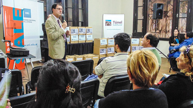 En el marco de la XXII Feria del Libro de Santa Fe, el Túnel Subfluvial "Raúl Uranga-Carlos Sylvestre Begnis" afianzó vínculos con instituciones educativas y bibliotecas de la ciudad de Santa Fe. Fue mediante la participación activa en dos interesantes actividades que tuvieron lugar en los Altos de la Estación Belgrano. Por un lado, el martes a la tarde se concretó la primera capacitación docente del fascículo N°17 de Aula Ciudad que gira en torno a la historia, el presente y el futuro del Ente Interprovincial. Por otro, el miércoles tuvo lugar el acto central de la segunda campaña "Crear, Aprender, Emprender" impulsada por la Universidad Nacional del Litoral (UNL) que cuenta con el apoyo del Túnel Subfluvial; en la ceremonia se hizo entrega de libros a bibliotecas públicas y populares de la capital provincial.