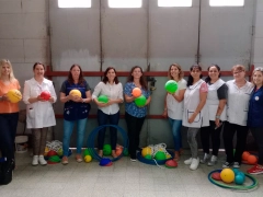En ese marco, a través de la Dirección de Educación Física, se entregaron pelotas, conos, aros y sogas, entre otros elementos que se utilizarán en circuitos, juegos de vóleibol, handball y otros.