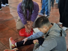 El encuentro se organizó en formato lúdico, con simuladores de bebés y torsos de adultos, a fin de que los chicos puedan aprender de manera práctica dónde ubicar las manos, qué hacer y qué no hacer en situaciones de emergencia.