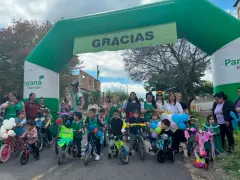 Cada niño llegó acompañado por su familia y su bicicleta adornada con cintas y globos. Los padres no solo alentaron desde la vereda, sino que también fueron parte del recorrido, compartiendo la emoción de ver a sus hijos disfrutar de un día especial.