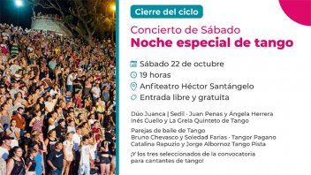 Este sábado habrá una noche especial de tango, desde las 19 en el Anfiteatro Héctor Santángelo. Danza, clases de baile y conciertos de música, son algunas de las propuestas del “Fin de semana x 3” que se desarrolla en Paraná.