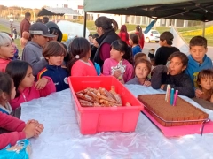 El barrio Las Piedras fue escenario de un festejo multitudinario por el Día del Niño. Más de un centenar de chicos participaron de una jornada que combinó juegos, sorteos y una merienda comunitaria. La actividad incluyó papas asadas en cucuruchos, churros con dulce de leche, una chocotorta gigante y bolsas de golosinas para todos los presentes.