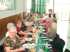 Durante la jornada, los jubilados compartieron un almuerzo que incluyó empanadas, arrollados de pollo, bocaditos y sándwiches. “Es muy importante para nosotros que trabajamos toda una vida. Festejar el día del jubilado es genial”, comentó una de las asistentes.