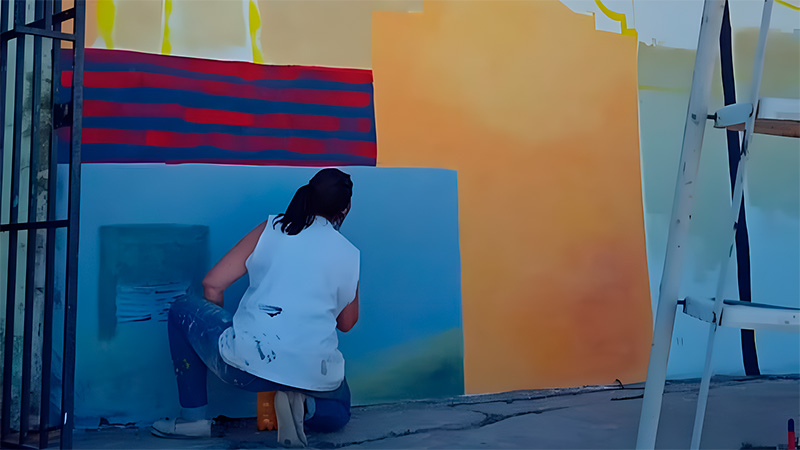 Este viernes al mediodía Pueblo Belgrano inaugurará un mural conmemorativo. El trabajo está inspirado en los lugares más representativos de la localidad y es desarrollado por dos artistas locales.