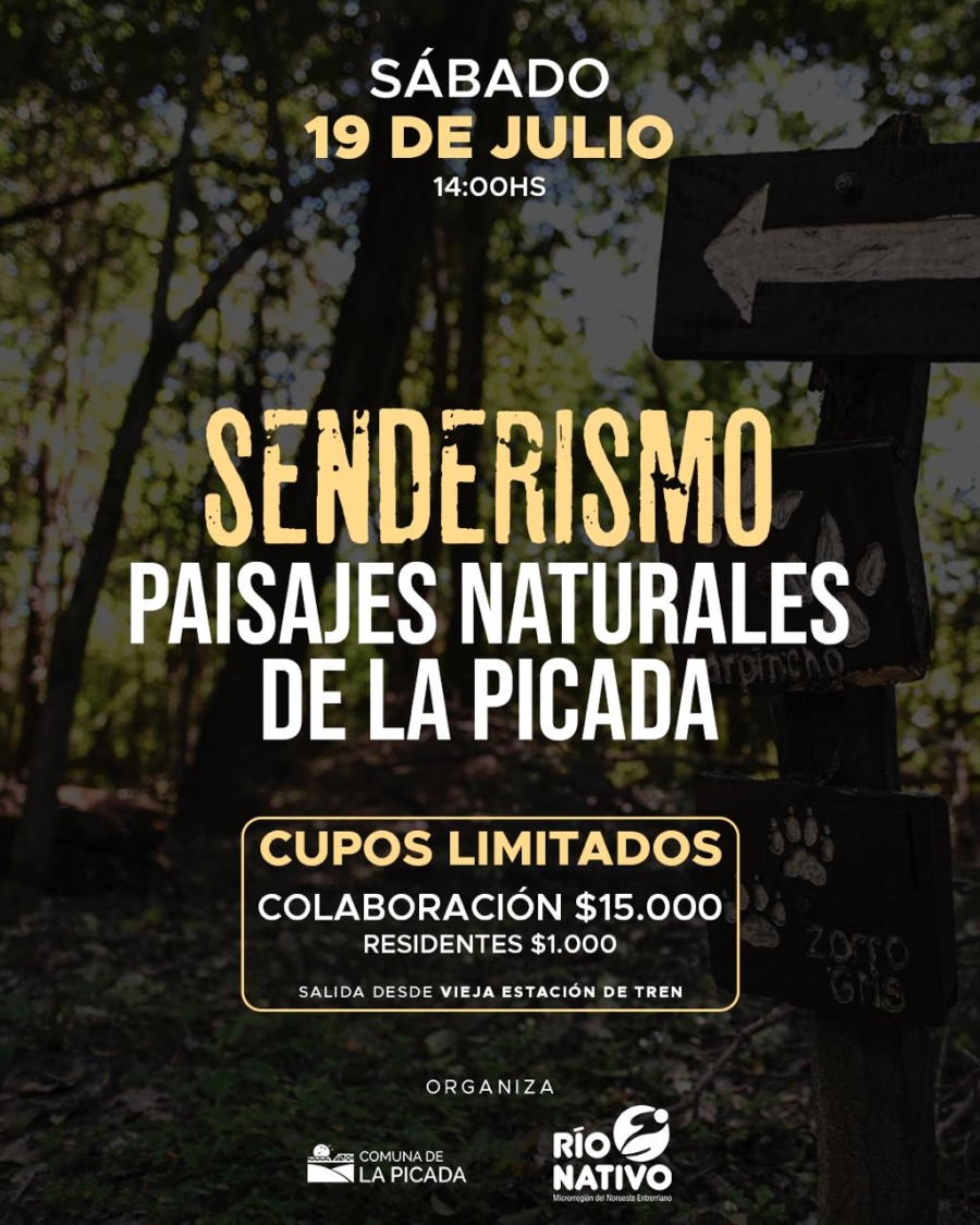 Este sábado 19 de julio se realizará una nueva propuesta de senderismo en la zona de La Picada, departamento Paraná, con un recorrido guiado por la costa sur del arroyo y diversos paisajes naturales característicos del lugar. La actividad comenzará a las 14 con punto de encuentro en la estación de tren, donde hay espacio disponible para el estacionamiento de vehículos.