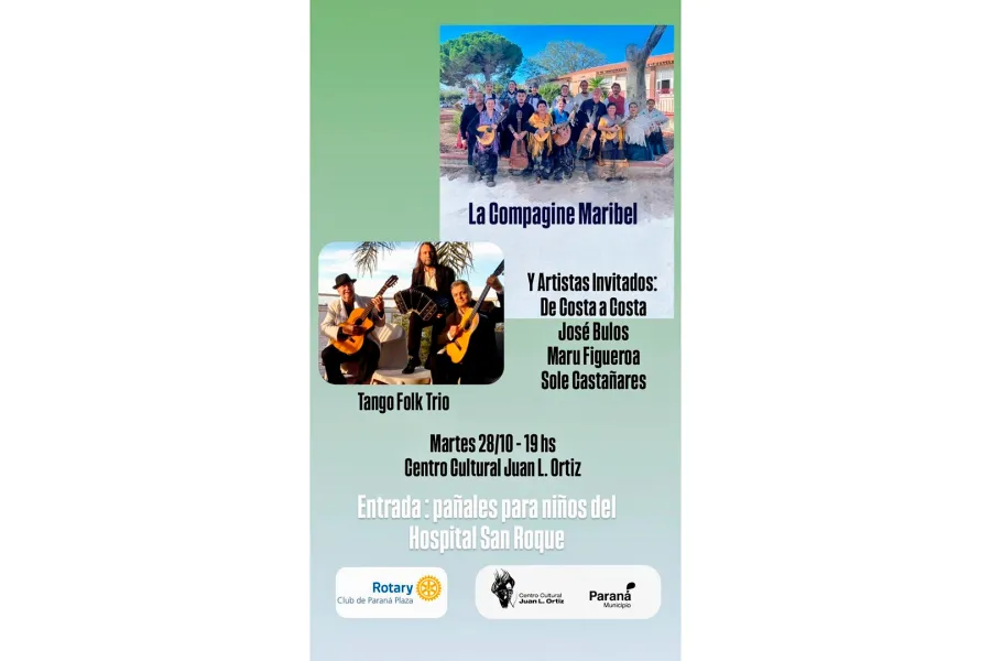 La actividad, organizada junto al Rotary Club de Paraná Plaza y la Municipalidad de Paraná, tendrá entrada solidaria, consistente en la donación de pañales para niños del Hospital San Roque.