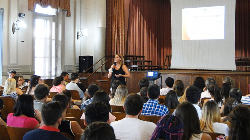 Luego de los discursos, desde el Área de Ingreso, Permanencia y Egreso explicaron de qué manera estaba organizado el Curso de Ingreso al que los nuevos integrantes de la Facultad comenzaron a asistir apenas finalizado el acto.