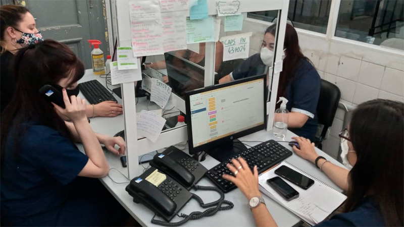 El equipo interdisciplinario atiende diversas consultas que muchas veces exceden a COVID como el pedido de turnos, la farmacia, los consultorios o la mesa de entradas.