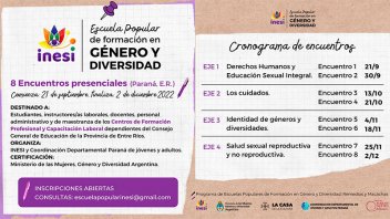 La Asociación Civil INESI presentará en Paraná un nuevo proyecto: "Escuela Popular en Géneros y Derechos Humanos", que se llevará adelante en la capital entrerriana durante los próximos meses.
