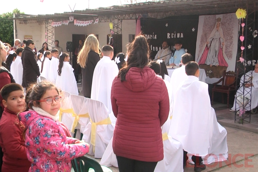 Bajo el lema “Con María nos queremos más”, la comunidad del complejo educativo “María Reina Inmaculada”, ubicado en barrio Macarone de la ciudad de Paraná celebró este viernes su fiesta patronal y los alumnos de 5to grado hicieron su primera comunión.