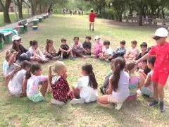 Uno de los profesores a cargo del grupo explicó cómo se desarrollaban algunos de los juegos. Jorgelina, responsable del grupo de siete años, detalló que el “pato ñato” se juega “haciendo una ronda, todos sentados, mientras uno pasa por afuera tocando la cabeza y cuando dice ‘ñato’ empieza a correr”.