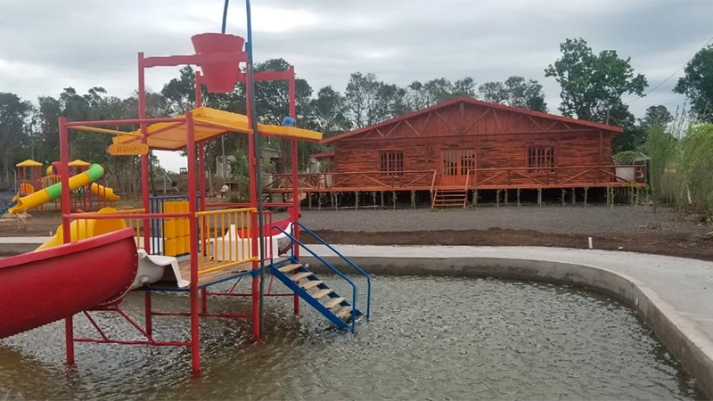 El mismo cuenta con 4 hectáreas -2 para estacionamiento y 2 para recreación-. Conformado por piletas para grandes y chicos, toboganes de agua, quinchos, salón de usos múltiples, área gastronómica, juegos infantiles, además de las 11 cabañas equipadas que suman 60 camas a la oferta de alojamiento turístico de la ciudad de Paraná, más el futuro Parque Acuático dentro del mismo complejo.