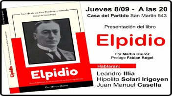 Este jueves 8, a las 20, en la Casa del Partido Radical, San Martín 543 de la ciudad de Paraná, se realizará la presentación del libro "Elpidio", del autor Martín Quiróz y con prólogo del ex diputado nacional Fabian Rogel.