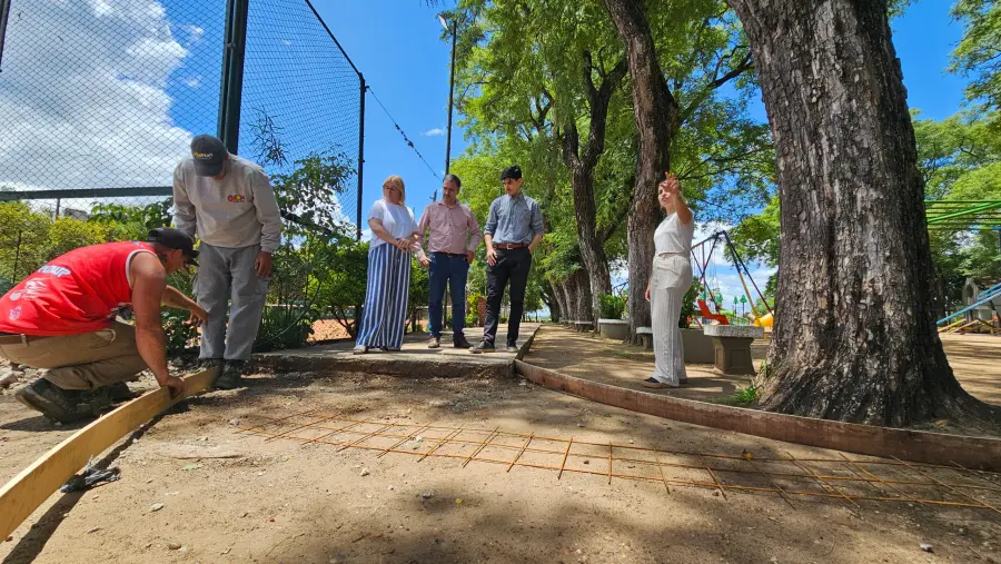 La viceintendente de Colón, María Dalleves, a cargo del Ejecutivo Municipal, junto al secretario de Desarrollo Humano, Juan Pablo Villalba; el secretario de Gobierno, Mariano Bravo; y la coordinadora del Área de Hábitat y Vivienda, Camila Cricel, realizaron una recorrida por los trabajos que se ejecutan en el Parque Quirós.