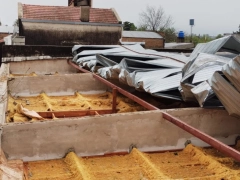 Las fuertes precipitaciones provocaron la voladura de techos en varias secciones, incluyendo aulas, cocina y comedor de la escuela Nº 99 Bartolomé González, en La Paz.