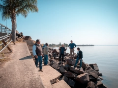 Mediante este recorrido por las bases del terraplén, constataron un avance importante en el deterioro del mismo producto de la erosión que provoca el oleaje, fundamentalmente sobre el lado este.