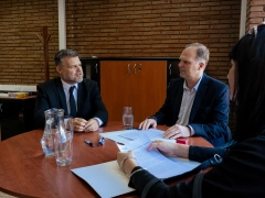 El director ejecutivo de ATER, Jesús Korell, se reunió con Elsa Miraglio, intendenta de Tabossi, y Mario Sokolovsky, intendente de Valle María, para avanzar en una agenda de cooperación mutua y determinar acciones que permitan optimizar la fiscalización y mejorar la atención a los contribuyentes.