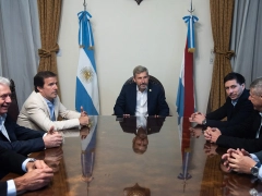 Junto al secretario general de la Gobernación, Mauricio Colello; y al secretario de Turismo, Jorge Satto, concurrieron al encuentro en el Salón de Acuerdos, los presidentes de la Faevyt, Andrés Deyá; y de la Asociación Entrerriana de Agentes de Viajes y Turismo, Oscar Basa.