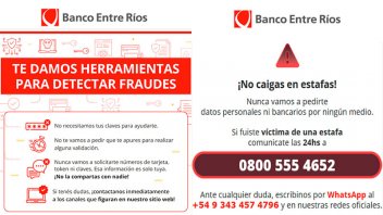 El Banco Entre Ríos recordó cuáles los tipos de estafas virtuales. Más detalles en este link.