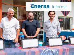 La empresa Enersa cedió 16 reflectores para reforzar la iluminación de su campo de juego de fútbol y ampliar el uso diario de la institución. El acto fue encabezado por el ministro de Gobierno y Trabajo, y vicepresidente de Enersa, Manuel Troncoso.