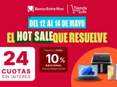 En el marco del Hot Sale, Banco Entre Ríos y Tienda Clic lanzaron una propuesta imperdible para sus clientes. Durante los días 12, 13 y 14 de mayo, quienes compren en https://www.tiendaclic.com.ar/ utilizando tarjetas de crédito de Banco Entre Ríos y pagando con MODO desde la app del banco, accederán a hasta 24 cuotas sin interés en todos los productos de la tienda, más un 10% de reintegro extra con tope de $5.000.