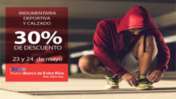 El Nuevo Banco de Entre Ríos lanzó una promoción exclusiva para la compra de indumentaria deportiva y calzado, con sus tarjetas de crédito, los días lunes 23 y martes 24 de mayo en más de 50 comercios adheridos de la provincia.