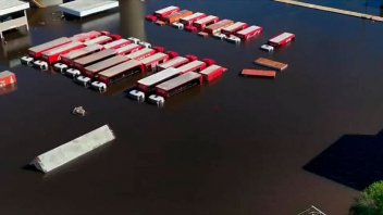 Un video grabado por un drone que recorrió la zona, muestra a los camiones y los edificios de la planta, casi tapados por el agua.