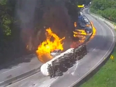 Un camión cisterna cargado con etanol volcó y explotó en la BR-101, en Palhoça, Brasil, provocando un incendio que afectó a 24 vehículos y dejó cinco heridos. La carretera estuvo cerrada más de 15 horas para controlar el fuego y limpiar la zona.