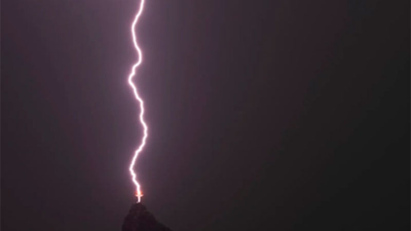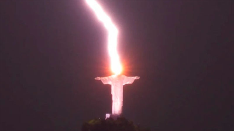 En las redes sociales se compartieron imágenes del momento justo cuando un rayo cayó sobre la estatua del Cristo del Corcovado que se encuentra en uno de los cerros de la ciudad brasileña de Rio de Janeiro.