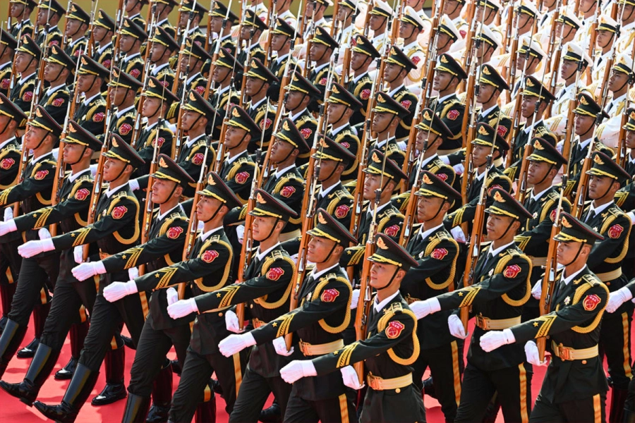 Más allá de la exhibición de armamento, uno de los aspectos más admirados por la población china es la precisión de las formaciones militares.