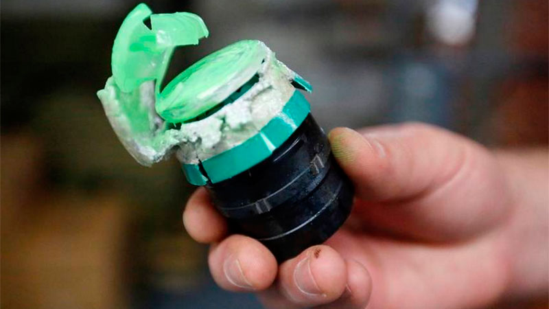 Micron Products Inc, de Fitchburg, Massachusetts, fabrica esta nueva munición mucho más grande que las balas de goma. Los cartuchos tienen una parte superior de silicona que se expande y aplana con el impacto, lo que aumenta el dolor e incapacita al sospechoso.
