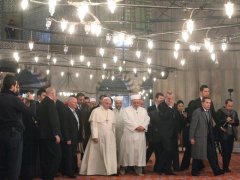 Con un gesto hacia los musulmanes, el Papa Francisco rezó en la Mezquita Azul